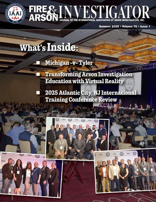 A subscription to the Fire & Arson Investigator journal is one of the many membership benefits enjoyed by IAAI Members. The journal is published quarterly — January, April, July, and October. IAAI Membership is required to access online issues of Fire & Arson Investigator. Members, please sign in using the red SIGN IN button at the top right of the page for access.